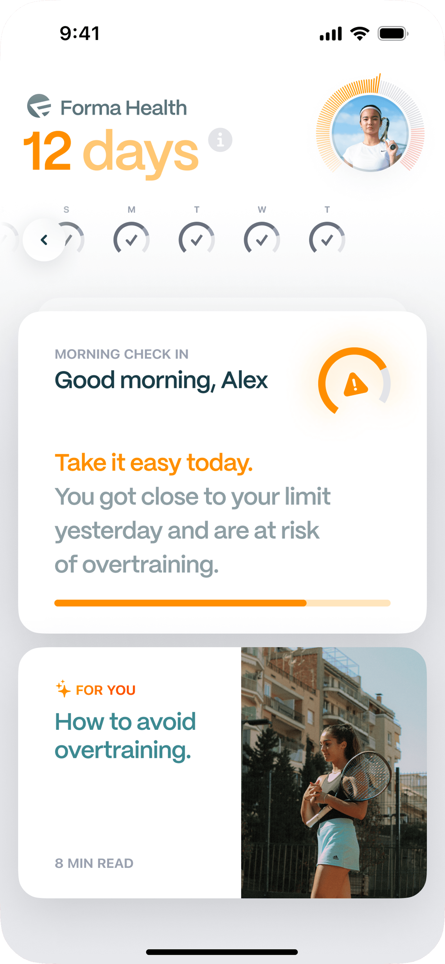 The homescreen elevates important information and watch-outs.